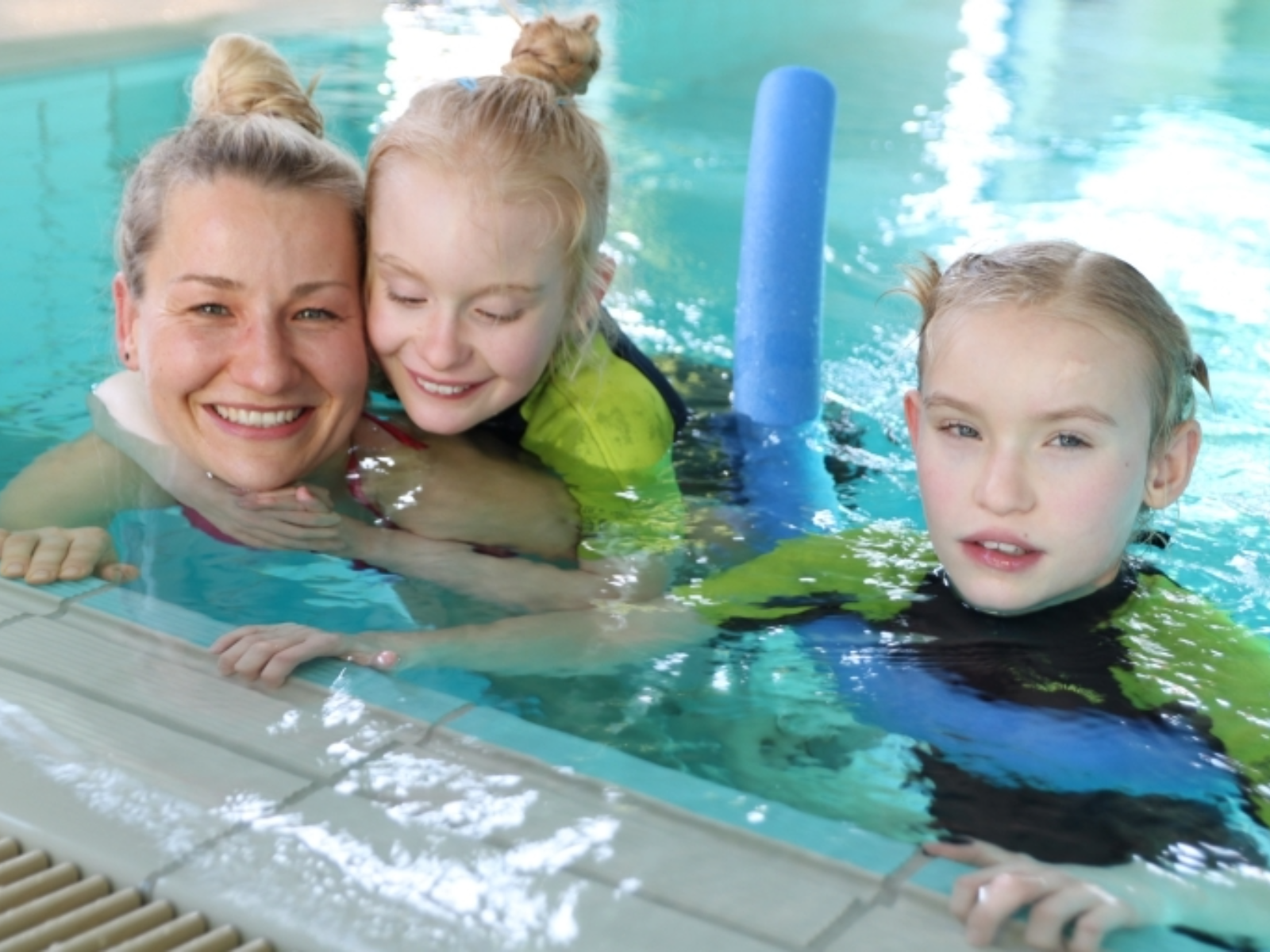 Es ist Donnerstagnachmittag, draußen scheint die Sonne, die Tür zum GalaxSea geht auf. Herein kommen die Zwillingsmädchen Leni und Lori. Leni geht an der Hand ihrer Mutter Katrin und ihrer Oma Sabine. Dicht gefolgt von Lori, die zielstrebig mit ihrem Rollator das Foyer im Freizeitbad betritt. Die beiden Mädchen leben seit ihrer Geburt mit motorischer Beeinträchtigung. Der Besuch der Physiotherapie im GalaxSea ist fester Bestandteil ihres Wochenplans.