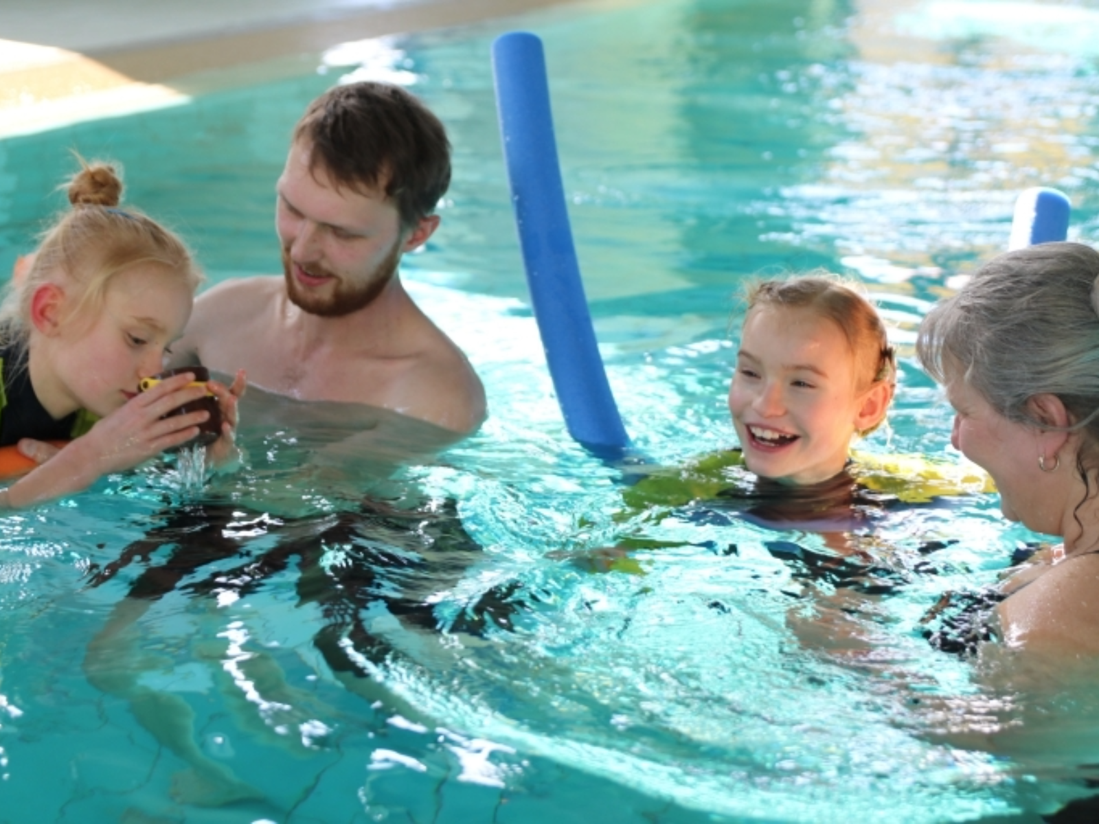 Ein Mal die Woche treffen die inzwischen zehnjährigen Mädchen hier ihre Therapeuten. Unter fachkundiger Anleitung tauchen sie dann für 30 Minuten ab. In der Schwerelosigkeit des Wassers verbessern sie ihre Beweglichkeit – oder genießen einfach nur Spiel und Spaß.
