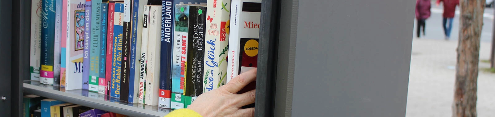 In unserem öffentlichen Bücherschrank gibt es Romane, Ratgeber, Bildbände, Reiseführer, Koch- und Kinderbücher. Für jeden Geschmack ist etwas dabei, vom Krimi bis zum Historienepos.
