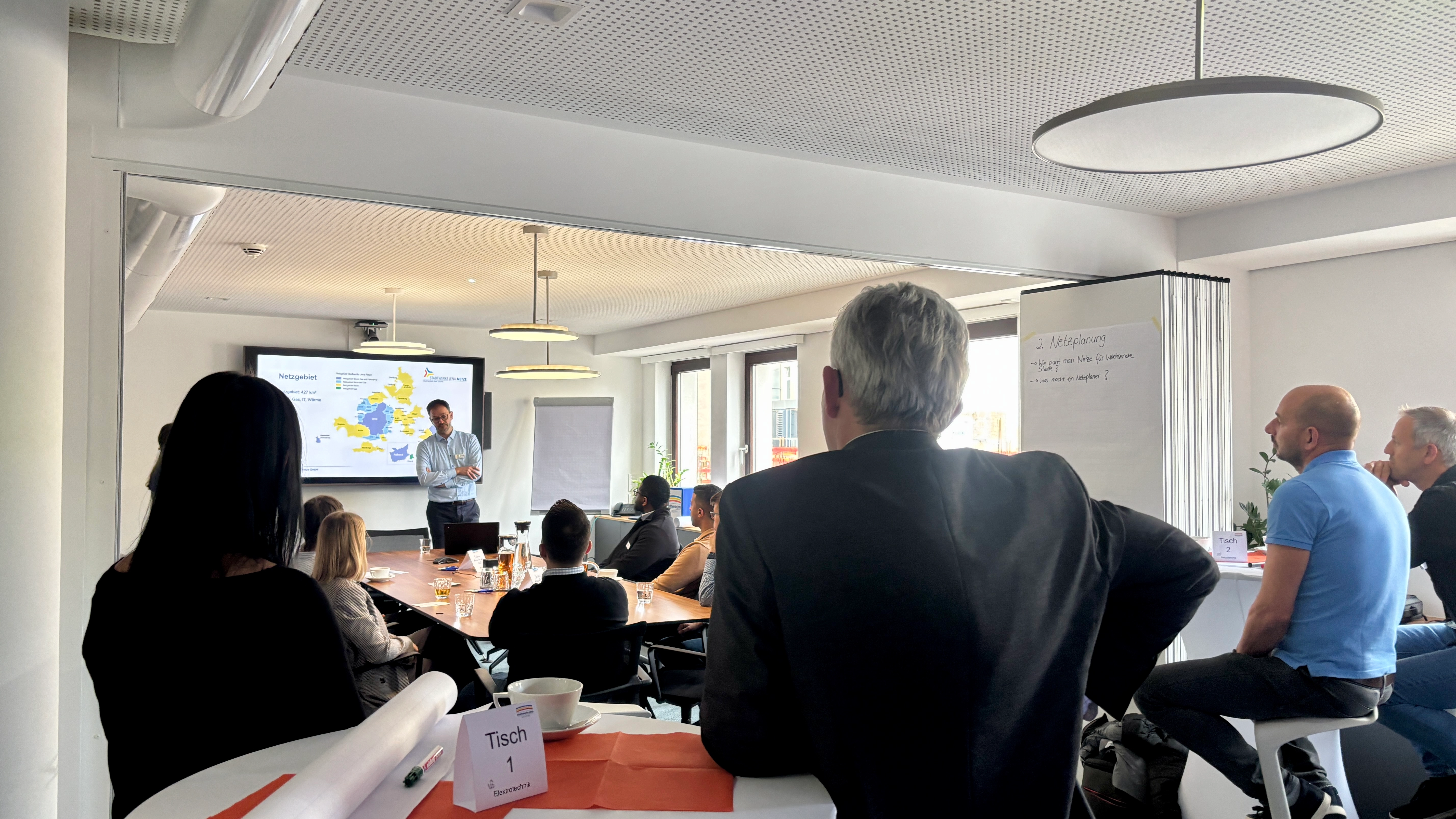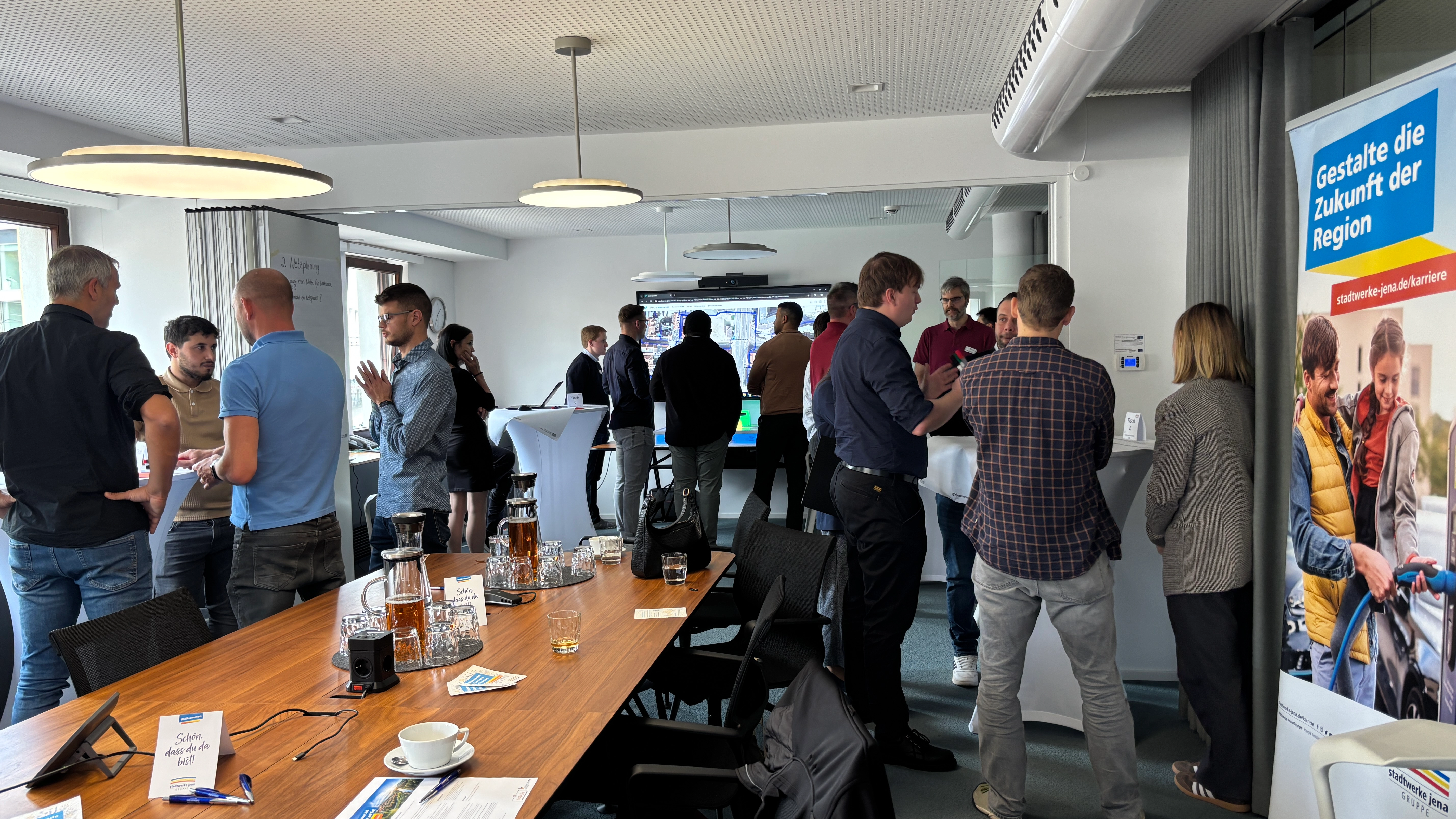 Am 22. Oktober 2025 haben die Stadtwerke Jena Netze im Kundencenter das 3. Meet & Greet der Stadtwerke Jena Gruppe veranstaltet – mit dem Ziel, interessierte Nachwuchskräfte für unsere vielfältigen Aufgabenbereiche zu begeistern und uns als attraktiven Arbeitgeber zu präsentieren. 12 Teilnehmerinnen und Teilnehmer aus den Bereichen Elektrotechnik und Energiewirtschaft nutzten die Gelegenheit, uns genauer kennenzulernen.