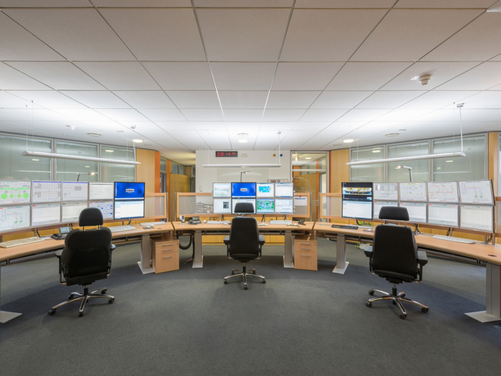 Um die acht bis zehn Bildschirme zierten zwischenzeitlich den Arbeitsplatz der Leitstellenkollegen. Inzwischen ist jeder Arbeitsplatz „nur noch“ mit einem einzelnen extragroßen sowie zwei normalen Bildschirmen ausgestattet. Die Zahl der zu beobachtenden Anzeigen ist dennoch gleichgeblieben: Von den unterschiedlichen Leitsystemen für die jeweiligen Medien über Brandmeldeanlagen, Videoüberwachungen bis hin zu Notrufsystemen für allein arbeitende Kollegen reicht da die Bandbreite.