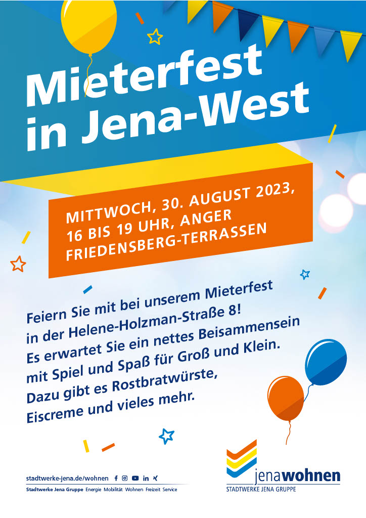 Eiscreme, Rostbratwurst, gute Laune und mehr – All das erwartet Sie auf unserem Mieterfest in Jena-West.